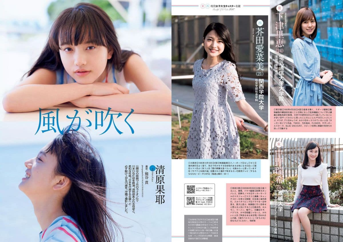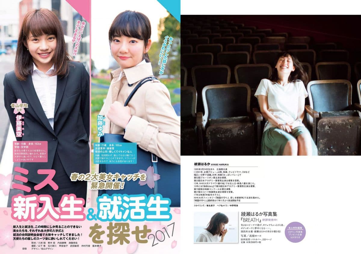 生田絵梨花 岩﨑名美 綾瀬はるか 武田あやな 清原果耶 宮内凛 菜乃花 2017年No.18 写真杂志 上一篇: 柏木由紀 竹富聖花 2011年No.08 写真杂志 下一篇: 柏木由紀 まほりか(仮) 瑞稀もえ 2013年No.43 写真杂志