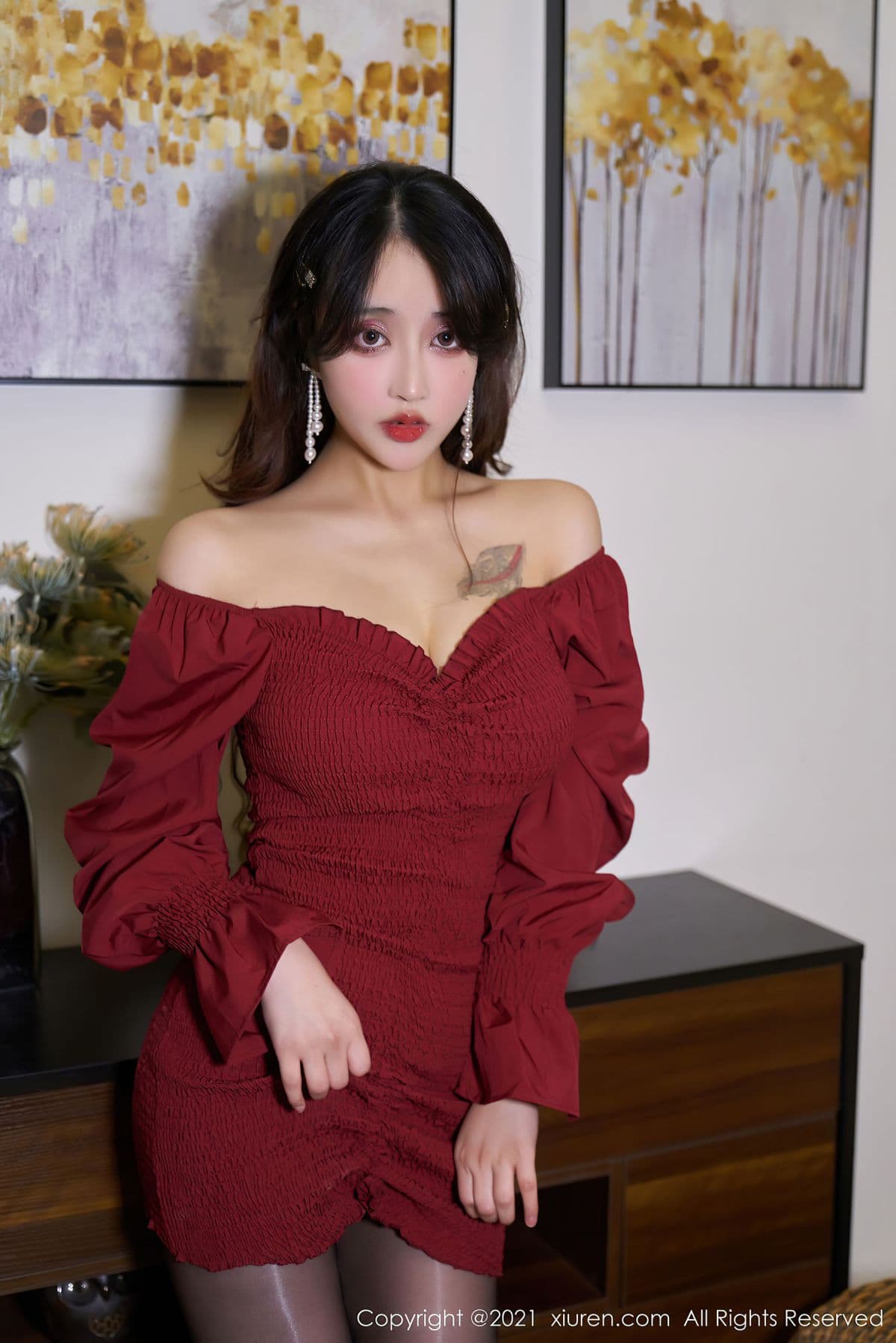 No.3476 林子欣Freya – 鲜艳猩红的深V抹胸短裙